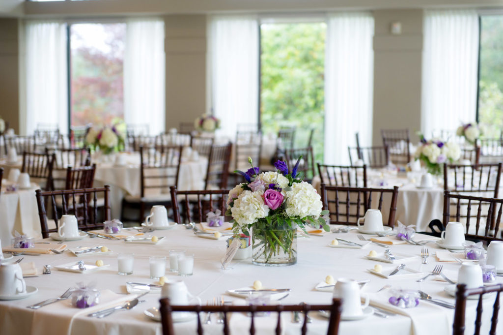 An outdoor ceremony was planned, but, mother nature showed up! Melissa Nolet of the Ipswich Country Club and her team worked tirelessly to set up the ceremony indoors in the upper small ballroom.